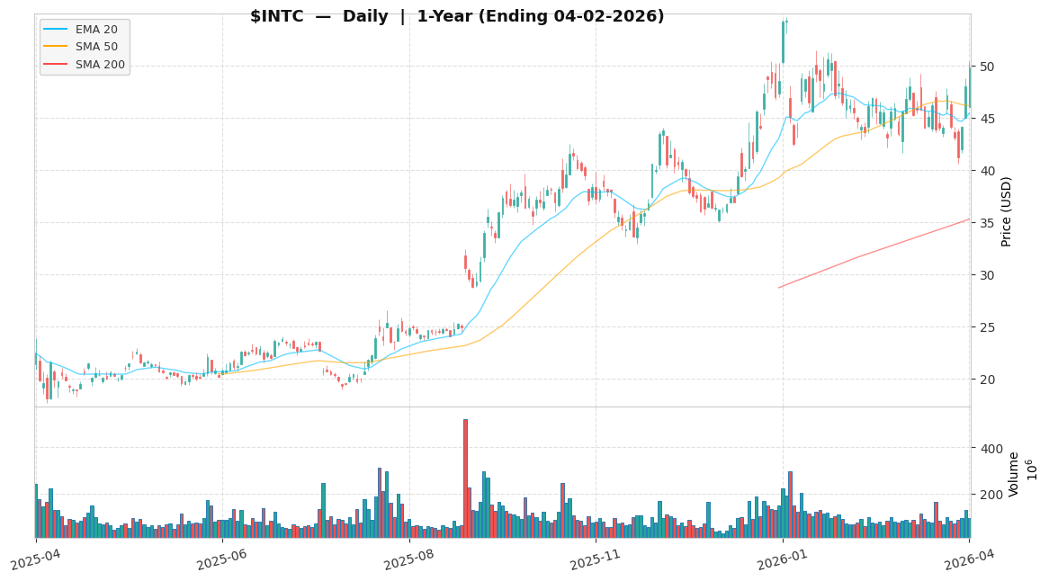 We assign Intel Corporation ($INTC) an “Accumulate (Selective)” rating for the next 12-18 months. We recommend a maximum 3% portfolio weight, adding only on pullbacks toward its 50-day moving average or the $45 support level. With a 50% probability for the Base case and 25% each for Bull/Bear, the probability-weighted return is ~8.8% (= +12.6% × 50% + 35.0% × 25% − 25.0% × 25%).